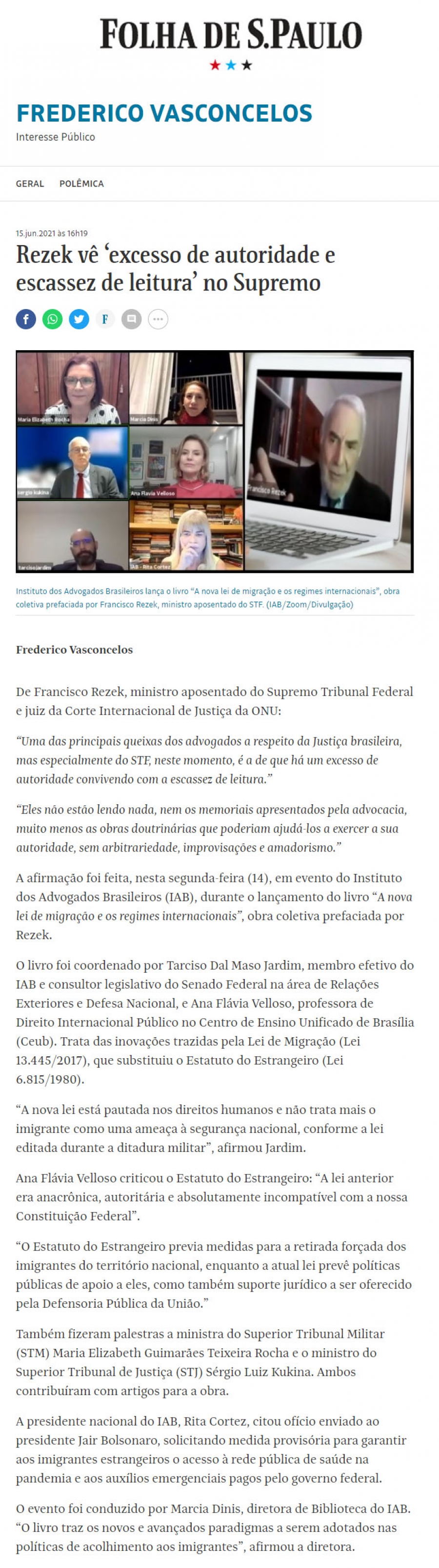 FONTE: Folha de S. Paulo - 15/05/2021