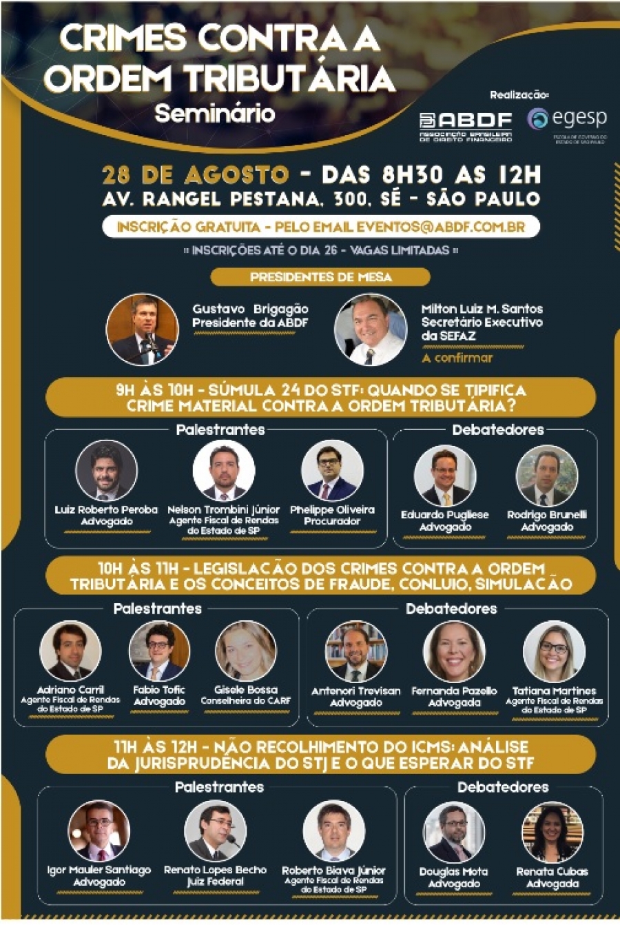 Dia 28 de agosto de 2019, das 08h30 às 12h - Local: Avenida Rangel Pestana, nº 300, Sé - São Paulo - SP.