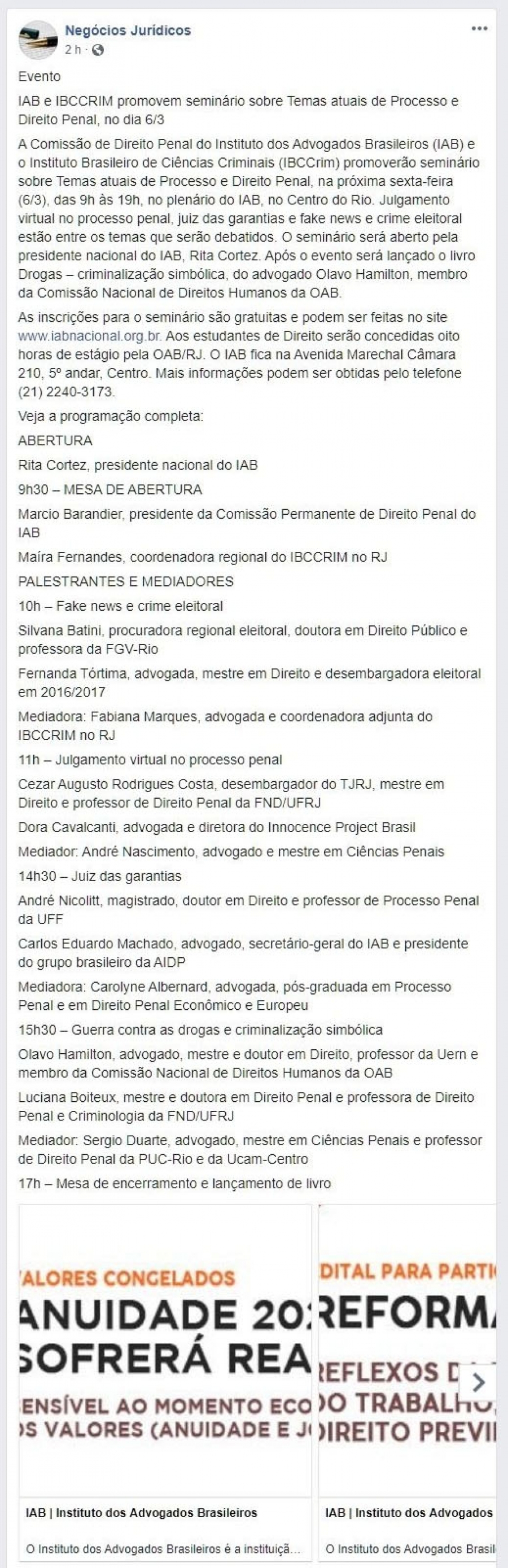 FONTE: Negócios Jurídicos - 03/03/2020