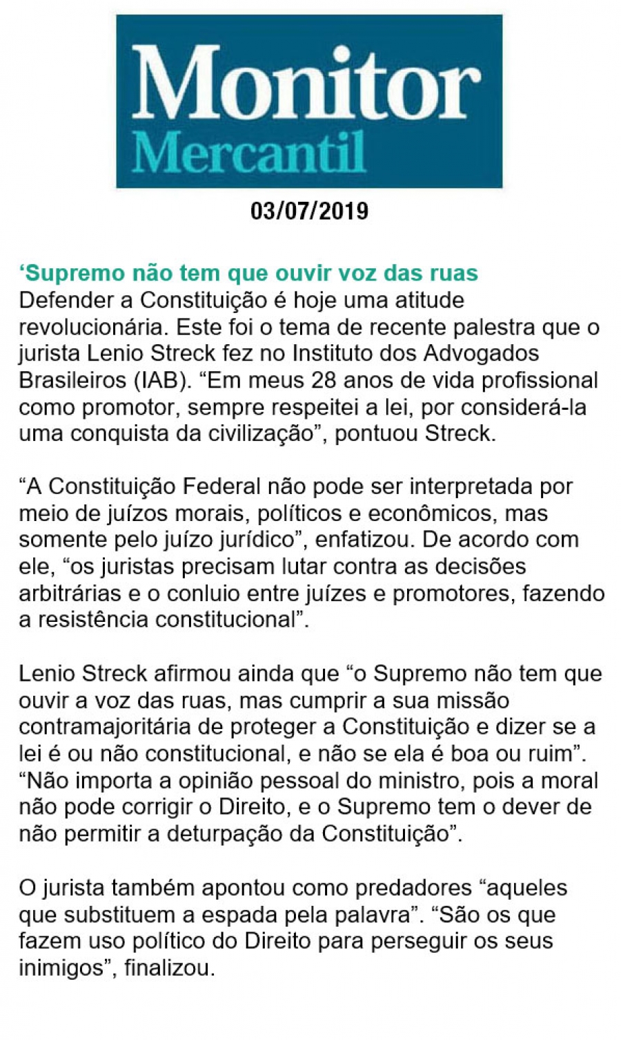 FONTE: Monitor Mercantil - 03/07/2019