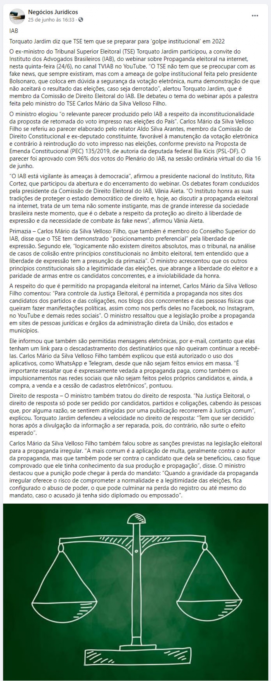 Torquato Jardim diz que TSE tem que se preparar para 'golpe institucional' em 2022