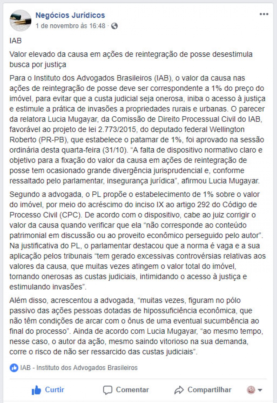 Valor elevado da causa em ações de reintegração de posse desestimula busca por justiça
