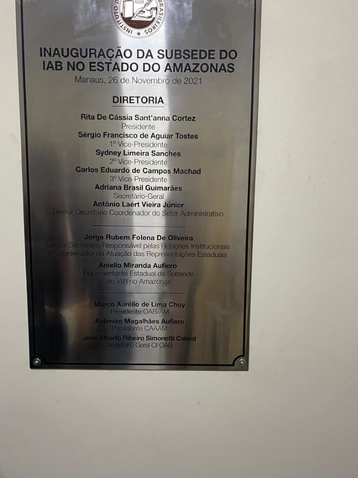Em uma cerimônia histórica, a segunda subsede do Instituto dos Advogados Brasileiros (IAB) em seus 178 anos existência foi inaugurada pela presidente nacional, Rita Cortez, no dia 26 de novembro, em Manaus (AM), na Casa de Bernardo Cabral, espaço que já abrigava a Academia de Ciências e Letras Jurídicas do Amazonas (ACLJA). “Esta é uma cerimônia para marcar a história do IAB, que se confunde com a do Brasil, porque a nossa entidade foi criada para formular o ordenamento jurídico do País e tem o compromisso estatutário de defender o estado democrático de direito, razão pela qual temos atuado intensamente contra as graves ameaças à democracia e à ordem constitucional”, afirmou a presidente em seu discurso, após o descerramento da placa de inauguração.