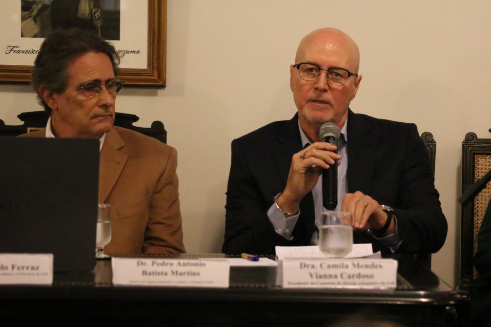 O primeiro painel, intitulado Arbitragem nos contratos de construção de navios, também teve a participação de Camila Mendes Vianna Cardoso, do membro da Comissão de Mediação, Conciliação e Arbitragem do IAB Pedro Antonio Batista Martins e do diretor corporativo e jurídico da Transpetro, Tomás Braga Arantes. A mediação foi conduzida pelo membro da Comissão de Mediação, Conciliação e Arbitragem do IAB Helio Paulo Ferraz.