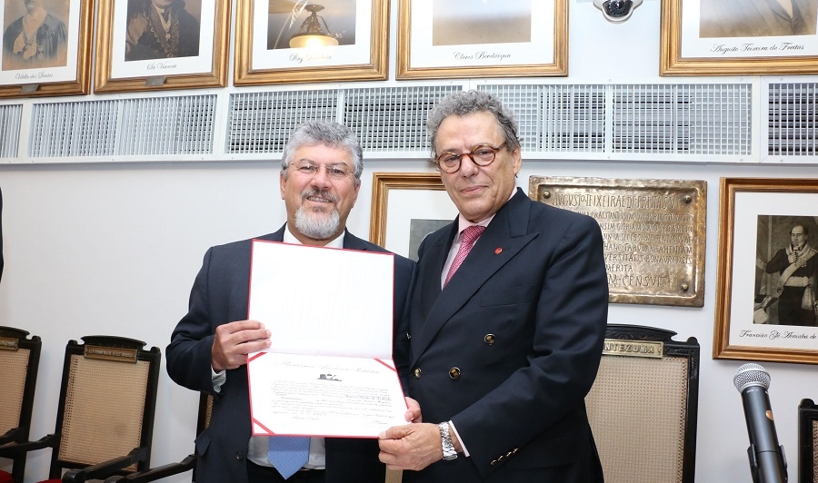 Francisco de Paula Eugênio Jardim de Souza Brasil recebe o certificado pelas mãos de Técio Lins e Silva