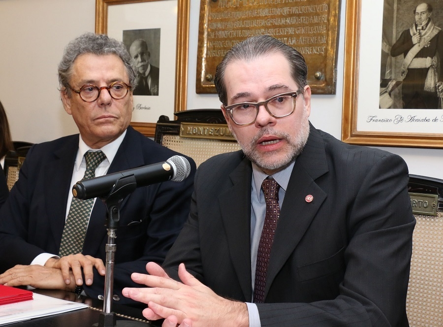 Ao saudar o novo membro honorário, Técio disse: “O seu ingresso no IAB muito nos honra e torna majoritária a presença de ministros do Supremo Tribunal Federal em nossos quadros, já que, agora, mais da metade dos magistrados da Suprema Corte faz parte da Casa de Montezuma”. O presidente enfatizou, também, que “o ministro Dias Toffoli tem a sua história vinculada ao direito eleitoral e à Justiça Eleitoral, com feitos admiráveis na sua passagem pela presidência do TSE”. Como exemplo, Técio citou “o projeto de lei proposto pelo ministro, na sua gestão, em 2015, e sancionado esta semana, criando o documento único de identificação, que reúne numa mesma carteira o RG, a habilitação e o título de eleitor”.