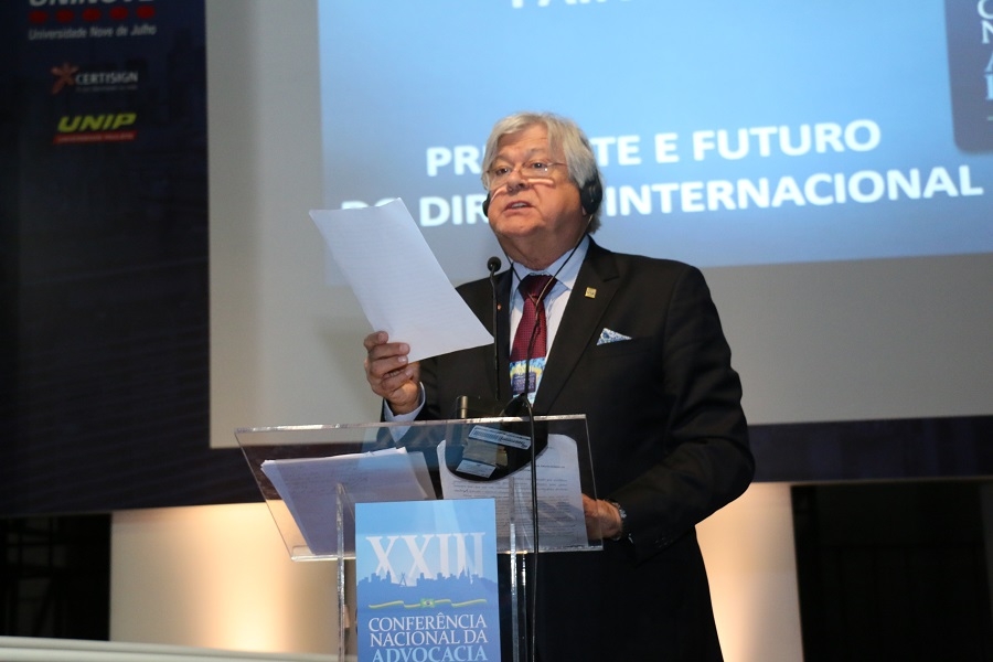 Soberania e direitos humanos – Francisco Resek tratou de Soberania e defesa internacional dos direitos humanos. Para o ministro aposentado do STF, "nenhum estado tem o direito de invocar a sua soberania para suprimir direitos fundamentais e tentar impedir que o direito internacional atue para restaurá-los e garanti-los às populações atingidas”. Em relação aos direitos humanos, Resek destacou a importância da defesa a ser empreendida pela advocacia, especialmente a brasileira. "Nenhuma Constituição Federal no mundo, em tempo algum, deu uma responsabilidade sem tamanho à advocacia, como a consagrada à advocacia brasileira pela nossa Carta Magna de 1988”, destacou o ministro.