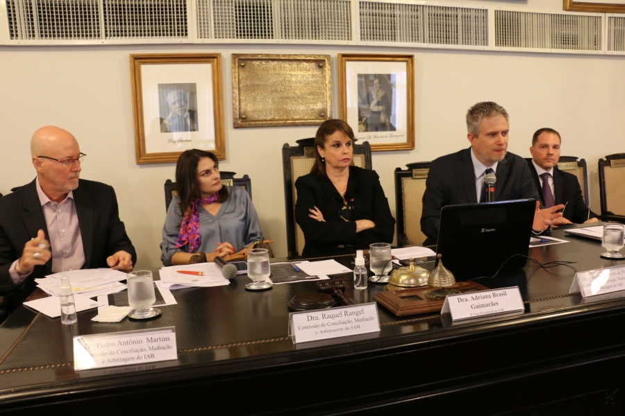 A mesa de debate foi conduzida pela presidente da Comissão, Adriana Brasil Guimarães, e contou com a presença do presidente da Comissão de Arbitragem da Seccional do Rio de Janeiro da Ordem dos Advogados do Brasil (OAB/RJ), Joaquim Tavares de Paiva Muniz, e do administrador judicial de falências e recuperação judicial Bruno Rezende. A mediação das discussões foi feita pelo vice-presidente da comissão organizadora, Alexandre Gonçalves, e pela advogada e membro da mesma comissão Raquel Rangel.