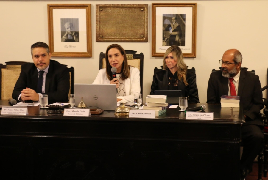 O evento foi aberto pela 3ª vice-presidente do IAB, Ana Amelia Menna Barreto, e também teve a participação da membro das Comissões de Direito Constitucional e de Direitos Humanos do Instituto Carina Barbosa Gouvêa, da vice-presidente da Comissão de Defesa da Democracia e da Liberdade de Imprensa do IAB, Margarida Pressburger, e do consócio Sérgio Sant’Anna. A mediação do lançamento foi feita pela diretora de Biblioteca do Instituto, Marcia Dinis, que destacou a urgência do debate sobre a preservação da democracia. “O livro é leitura obrigatória para quem deseja compreender os desafios para a salvaguarda de direitos fundamentais em meio às crises democráticas enfrentadas em todo o mundo”, disse a diretora.