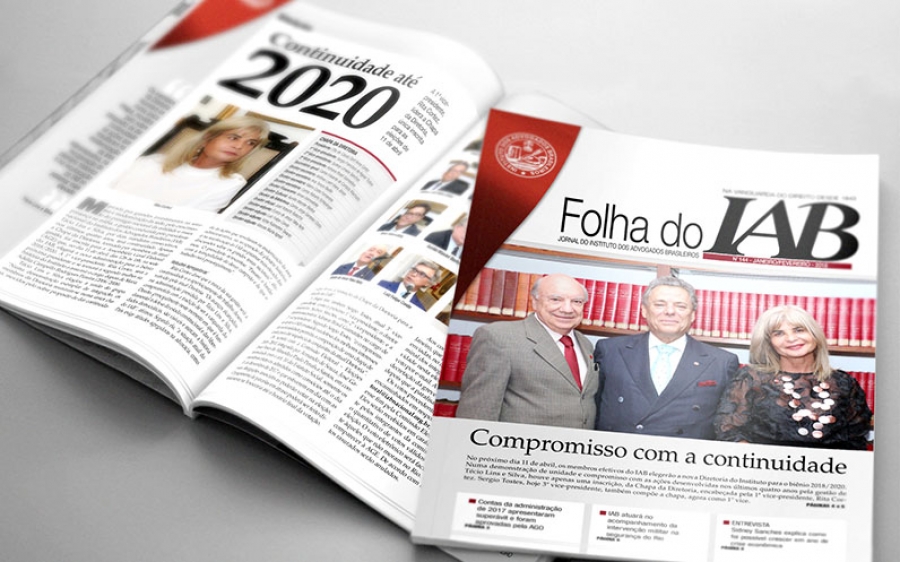 Na edição 144 da FOLHA DO IAB, o presidente nacional, Técio Lins e Silva, elogia a união da Diretoria, que formou a única chapa inscrita para a Assembléia Geral Eleitoral que, no dia 11 de abril, das 12h às 18h, na sede do IAB, elegerá a nova administração para o biênio 2018/2020. “Passarei o bastão com a tranquilidade do dever cumprido e de que o trabalho terá prosseguimento”, afirma Técio. A 1ª vice-presidente, Rita Cortez, será a próxima presidente e se tornará a segunda mulher na história do Instituto a assumir o cargo, ocupado, de 2006 a 2008, por Maria Adélia Campello Rodrigues Pereira.