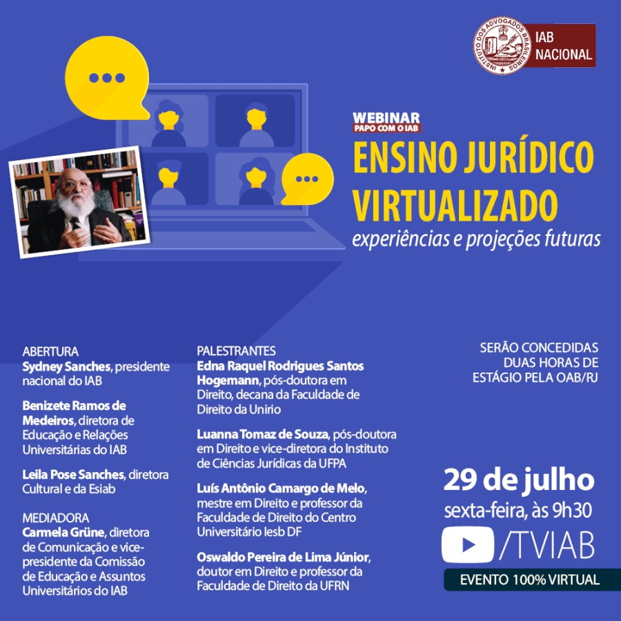 Aos estudantes de Direito que assistirem ao webinar serão concedidas duas horas de estágio pela OAB/RJ. Confira abaixo os nomes dos palestrantes.