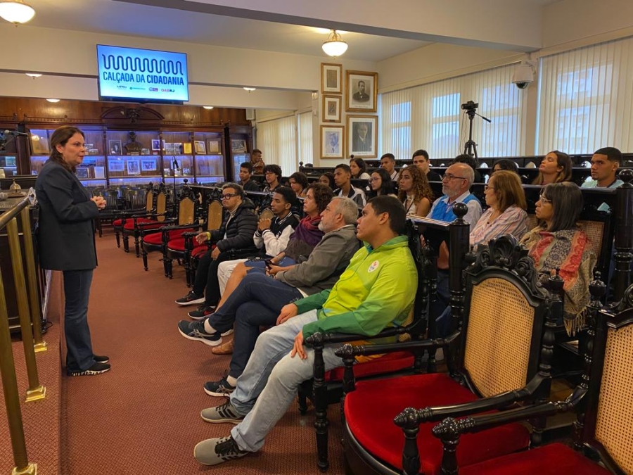 Os estudantes também assistiram a um vídeo institucional comemorativo dos 180 anos do IAB, que será celebrado em agosto de 2023. Eles tiveram a oportunidade de entender sobre a trajetória do Direito no Brasil, a criação da Ordem e o trabalho de grandes juristas que passaram pelo Instituto, como Francisco Gê Acaiaba de Montezuma e Myrthes Campos, a primeira mulher a advogar no País. “A visita me surpreendeu. É muito legal vermos a história do Montezuma e saber que o primeiro presidente do Instituto era negro”, disse Patrick Braga, estudante da Escola Municipal Elza Maria Bernardo Santa Rosa.