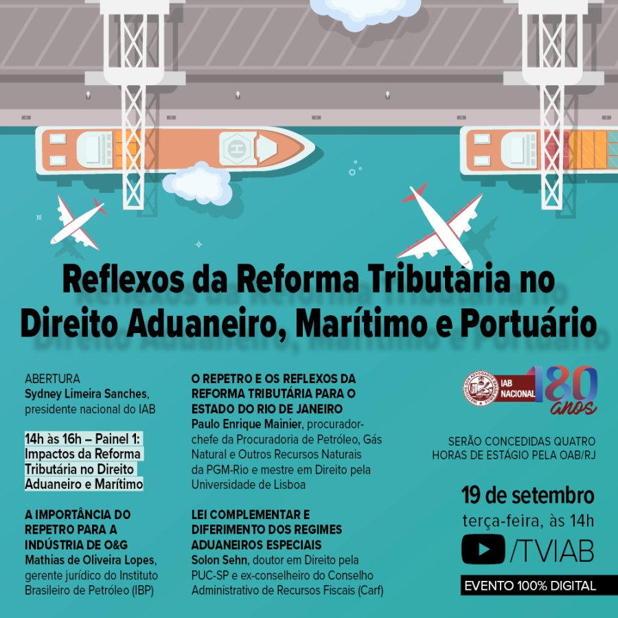 A primeira parte do evento será dedicada aos Impactos da Reforma Tributária no Direito Aduaneiro e Marítimo e terá o gerente jurídico do Instituto Brasileiro de Petróleo (IBP), Mathias de Oliveira Lopes, como palestrante do painel sobre A importância do Repetro para a indústria de O&G. A Lei Complementar e diferimento dos regimes aduaneiros especiais será o tema apresentado pelo doutor em Direito pela PUC-SP e ex-conselheiro do Conselho Administrativo de Recursos Fiscais (Carf) Solon Sehn. Já o gerente tributário da Transpetro, Alexandre Alves, fará palestra sobre o IPVA sobre as embarcações.