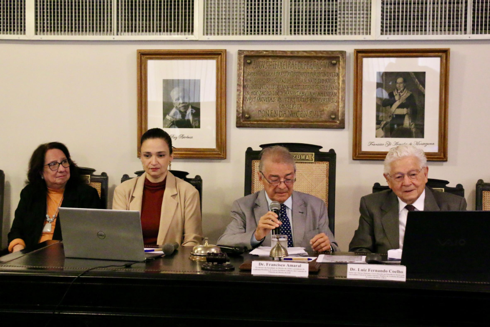 Filosofia nos dias atuais – Em sua palestra, Francisco Amaral refletiu sobre os desafios do pensamento jurídico diante das transformações da sociedade contemporânea. Segundo ele, “o saber hoje se transformou em um bem de consumo”, e a informação, antes apenas um meio, agora “passa a ser um objeto do Direito e da responsabilidade civil”. O jurista alertou que esse novo cenário traz conflitos que o pensamento jurídico tradicional ainda não consegue solucionar: “A informação é um bem que circula nas redes e pode suscitar problemas aos quais o pensamento jurídico tradicional não tem sabido enfrentar”.