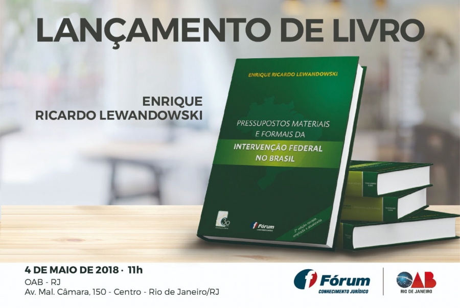 Embora ainda pouco estudada nos cursos de Direito, a intervenção da União nos estados e a desses nos municípios constitui um dos mais importantes instrumentos para a preservação do pacto federativo. Com essa premissa, o ministro Ricardo Lewandowski, do Supremo Tribunal Federal, lança nesta sexta-feira (4/5), às 11h, na OAB/RJ, o livro Pressupostos materiais e formais da intervenção federal no Brasil, publicado pela editora Fórum.