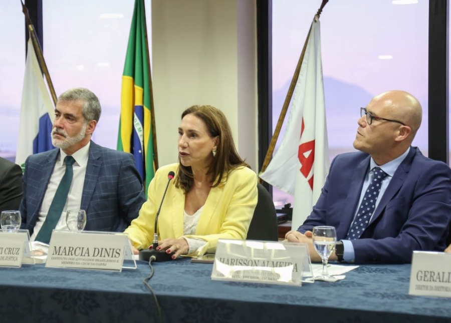 Da esq. para a dir., Luciana Boiteux, Luiz Felipe Conde, Vladimir Saboia, Fábio Nogueira, Ana tereza Basilio, Rogério Schietti, Marcia Dinis, Harisson Almeida e Geraldo Nogueira. Divulgação: OAB/RJ/Flávia Freitas