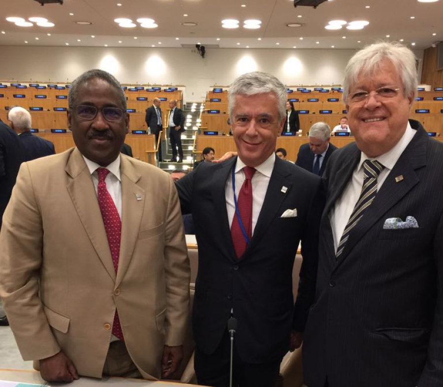 Do encontro em Nova York, participaram os presidentes de entidades representativas da advocacia em 110 países, entre os quais o presidente do CFOAB, Claudio Lamachia. Além do presidente da UIA, o advogado português e membro honorário do IAB Pedro Pais de Almeida, também esteve presente o próximo presidente da entidade, o ex-presidente da Ordem dos Advogados de Burkina Faso Issouf Baahadiou. O advogado africano será o primeiro negro a presidir a entidade dos advogados de maior prestígio no mundo.