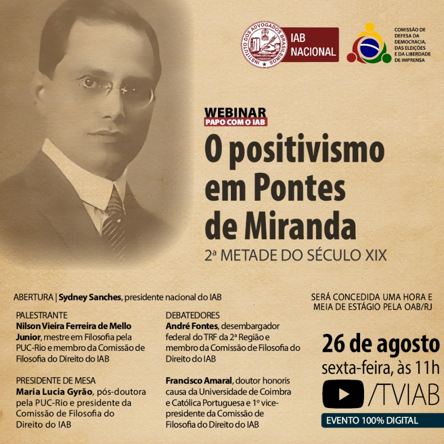 Aos estudantes de Direito que assistirem ao webinar, pelo canal TVIAB no YouTube, será concedida uma hora e meia de estágio pela OAB/RJ.