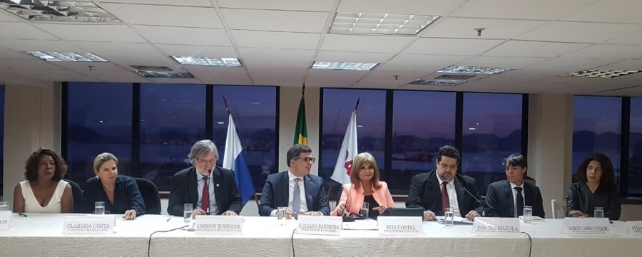 A solenidade de premiação foi conduzida pelo presidente da OAB/RJ, Luciano Bandeira. Ele compôs a mesa de abertura com Rita Cortez, Aderson Bussinger, o presidente da Comissão Especial de Direito Sindical da Seccional, Marcio Lopes Cordero; diretor e editor-chefe da Tribuna da Imprensa Livre, Daniel Mazola, a vice-presidente da Associação Carioca de Advogados Trabalhistas (Acat), Mônica Santos; a conselheira da OAB/RJ Clarissa Costa e a jornalista Juliana Rezende.