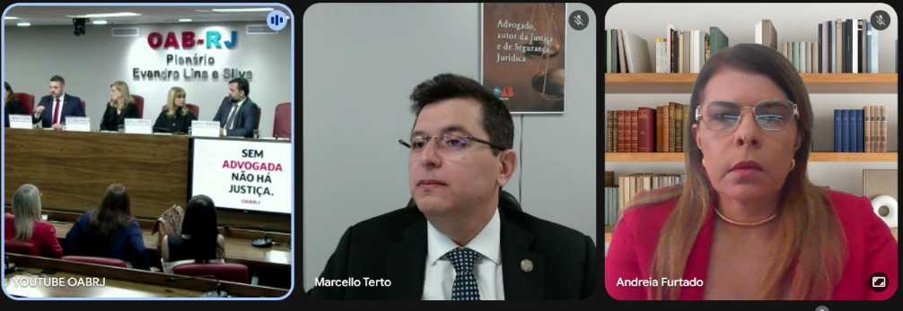 A mesa de trabalhos do evento contou com a presença da professora da Faculdade Nacional de Direito da Universidade Federal do Rio de Janeiro (FND/UFRJ) Márcia Souza, do diretor executivo da Associação Brasileira de Advogados do Rio de Janeiro (ABA/RJ), Diogo Ferreira, da diretora do Instituto Municipal de Proteção e Defesa do Consumidor – Procon Carioca, Renata Ruback, do diretor de Assuntos Legislativos da OAB/RJ, Marcio Vieira, e do presidente da Comissão dos Juizados Especiais da OAB/RJ, Carlos Guedes. Na mesa virtual estavam o ouvidor do Conselho Nacional de Justiça (CNJ), Marcello Terto, e a presidente da Comissão Nacional Especial dos Juizados Especiais do CFOAB, Andreia Furtado.