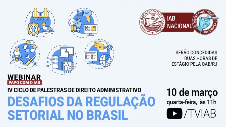 O webinar Papo com o IAB será aberto pela presidente nacional, Rita Cortez, e pelo presidente da Comissão de Direito Administrativo, Emerson Affonso da Costa Moura. Aos estudantes de Direito que participarem do evento serão concedidas duas horas de estágio pela OAB/RJ. A participação é gratuita. O controle será feito pelo chat, onde o aluno deverá se identificar com nome e e-mail.