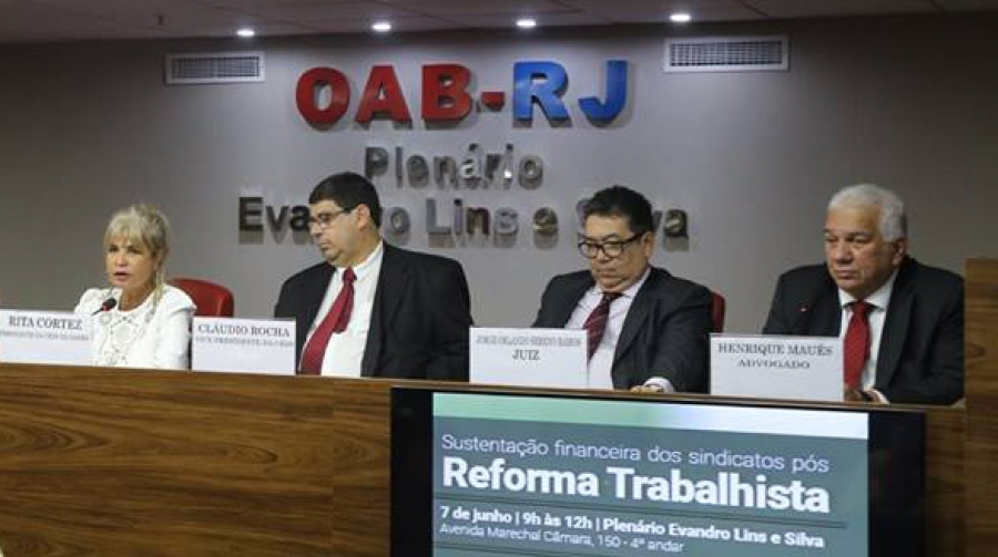 “O fim do financiamento dos sindicatos foi uma medida tomada com o objetivo de calar os movimentos sociais, para que não reagissem à reforma trabalhista.” A afirmação foi feita pela presidente nacional do Instituto dos Advogados Brasileiros (IAB) e da Comissão Especial de Direito Sindical (Ceds) da OAB/RJ, Rita Cortez, ao abrir nesta quinta-feira (7/6) o evento sobre Situação financeira dos sindicatos pós-reforma trabalhista, realizado no Plenário Evandro Lins e Silva, na sede da Seccional. Um dos pontos mais criticados da reforma no evento foi a extinção da contribuição sindical compulsória, principal fonte de receita das entidades de trabalhadores.