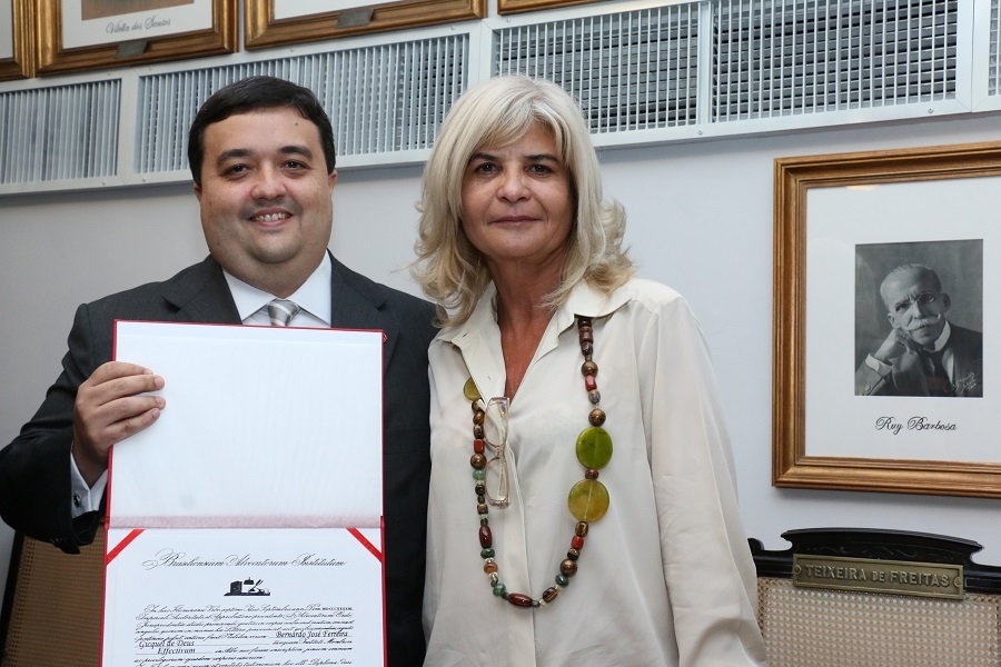 A 1ª vice-presidente do Instituto dos Advogados Brasileiros (IAB), Rita Cortez, presidiu a sessão ordinária desta quarta-feira (31/5) e deu posse, como membros efetivos, aos advogados Bernardo José Ferreira Gicquel de Deus e José Enrique Teixeira Reinoso, que compareceram ao plenário do IAB acompanhados de suas esposas e filhos.