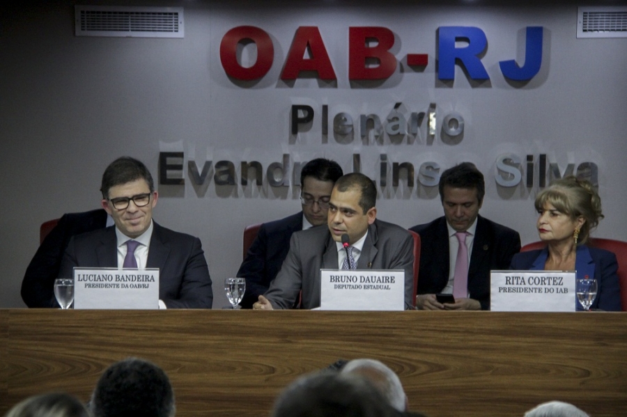 Bruno Dauaire falou de suas ações na Alerj em prol da advocacia. Em parceria com a Seccional, o deputado elaborou dois projetos. Um deles, sancionado, mas ainda não cumprido pela Justiça, obriga as serventias dos fóruns a afixar cartazes que informem sobre o direito do advogado a ter livre acesso ao magistrado. O outro, que acaba com a cobrança das taxas judiciárias para execução de honorários, enfrenta representação de constitucionalidade no Tribunal de Justiça do Estado do Rio de Janeiro (TJRJ).