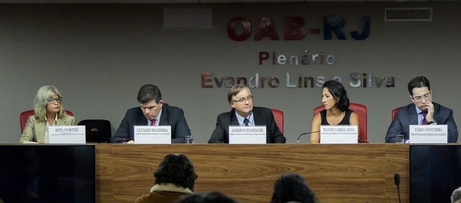 A mesa de abertura foi integrada, também, pelo tesoureiro e presidente da Comissão de Prerrogativas da OAB-RJ, Luciano Bandeira; o procurador-geral e coordenador das comissões temáticas da seccional, Fábio Nogueira; o diretor do CDP, Aderson Bussinger; e a professora da Faculdade de Direito da UFF Wanise Cabral Silva.