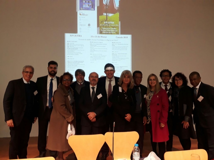 A 1ª vice presidente, Rita Cortez, representou o Instituto dos Advogados Brasileiros (IAB), nesta quinta-feira (22/3), na solenidade de abertura do XIV Jutra, que está sendo realizado pela Associação Luso-Brasileira de Juristas do Trabalho (Jutra), no auditório da Casa das Histórias Paula Rego, museu instalado em Cascais, Lisboa (Portugal). Compuseram a mesa de abertura a presidente da Jutra e secretária da Comissão de Direito do Trabalho do IAB, Benizete Ramos Medeiros; o vice-presidente da Jutra, Álvaro Tenreiro de Matos; e o presidente da Ordem dos Advogados de Portugal (OAB), Guilherme Figueiredo, que fez conferência inaugural do evento, cujo tema central é sobre