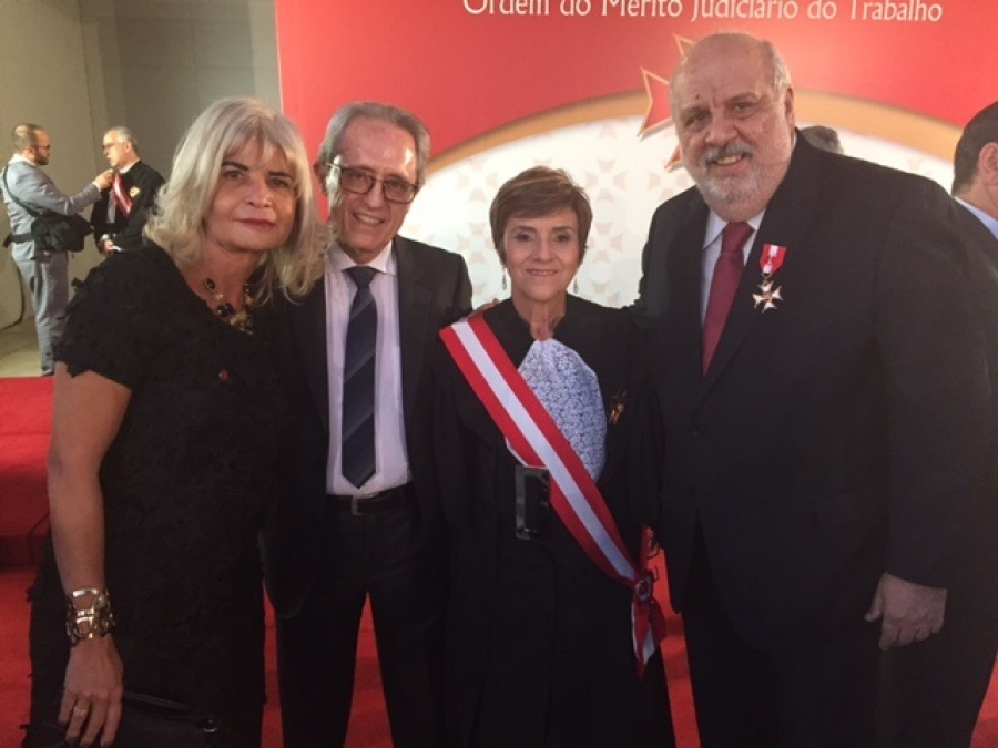 A 1ª vice presidente do Instituto dos Advogados Brasileiros (IAB), Rita Cortez, representou a entidade na solenidade realizada no Tribunal Superior do Trabalho (TST), na sexta-feira (11/8), Dia do Advogado, em que o consócio Paulo Sérgio Marques dos Reis foi condecorado com a comenda do mérito judiciário trabalhista, concedida a personalidades, advogados e magistrados que se destacaram no âmbito da Justiça do Trabalho. Compareceram à solenidade os ministros do TST Alexandre Agra Belmonte, Delaíde Arantes e Aloysio Correia da Veiga e o subprocurador-geral da Justiça do Trabalho, Luis Camargo de Melo. Os quatro são membros honorários do IAB.