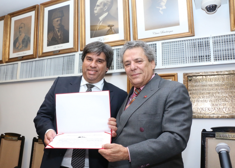 Romualdo Mendes de Freitas Filho recebe de Técio Lins e Silva o certificado de membro efetivo do IAB