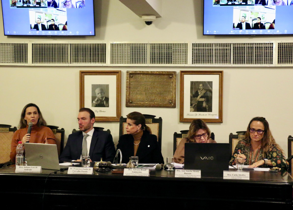 O evento contou, ainda, com palestra da diretora executiva da Câmara de Mediação e Arbitragem da Fundação Getúlio Vargas (FGV), Juliana Loss de Andrade. A 2ª vice-presidente do IAB, Ana Amelia Menna Barreto, e a membro da Comissão de Mediação, Conciliação e Arbitragem do IAB Carla Alcofra foram as debatedoras do encontro.