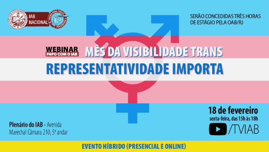 Também participarão da abertura os presidentes da OAB/RJ, Luciano Bandeira; e da Comissão de Direitos Humanos do IAB, Carlos Roberto Schlesinger; o vice-presidente da comissão, Marcos Luiz Oliveira de Souza; o membro da comissão Nélio Georgini da Silva; a vereadora de Niterói Benny Briolly, primeira transexual a ocupar o cargo, e a presidente do Grupo Pela Vidda, Maria Eduarda Aguiar. O webinar reunirá advogados, magistrados, ativistas políticos e acadêmicos. Aos estudantes de Direito serão concedidas três horas de estágio pela OAB/RJ.