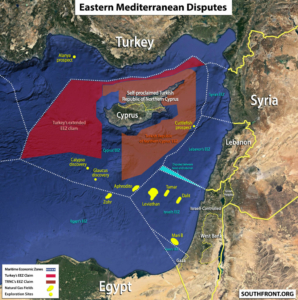 Depois Chipre é quem foi parar as principais manchetes dos jornais e há uma explicação também sob a ótica geopolítica da energia. As reservas de gás descobertas são enormes e terá influência direta no fornecimento de gás para a Europa. Em verdade Chipre será o hub regional de gás e, naquele mesmo ano, a Total (equivalente à Petrobras francesa) começou a perfurar na costa sul. E neste momento justamente qual nação pressiona Chipre para a quebra? Rússia. Tal como a Grécia foi o elemento do cabo de guerra Rússia-Alemanha, Chipre foi o ponto de estrangulamento do novo cabo de guerra franco-germânico de um lado e russo do outro.