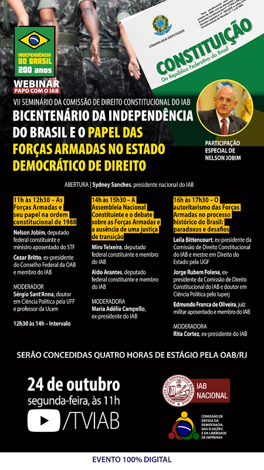 Data e hora: 24/10, segunda-feira, a partir das 11h.