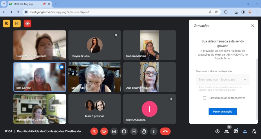No dia 05/02/2024 reuniram-se de forma virtual as integrantes da Comissão dos Direitos da Mulher do IAB.