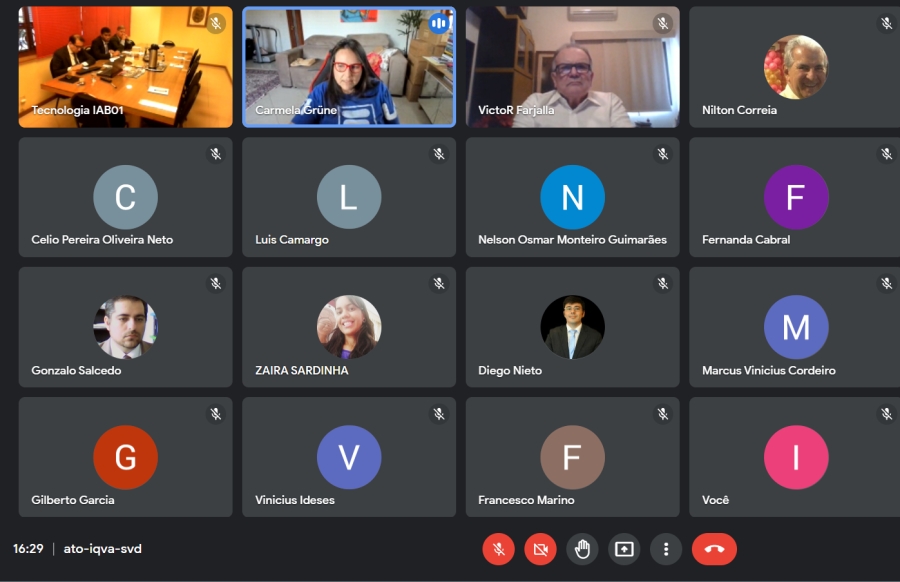 Dr. .......... O Doutor Daniel Apolônio cumprimenta a todos e todas, agradecendo a presença dos membros identificados presencialmente e na plataforma tecnológica na meet.google reunião da Comissão. Dando início aos trabalhos o Senhor Presidente informa a todos esta reunião é a primeira realizada de hibrida, presencial e virtual. Anota as ausência justificada e registra, também, a presença dos seguintes membros: Carmela Grune, Fernando Cabral, Gonzalo Salgado, Victor Farjalla, Luis Camargo, Nelson Ormar, Celio Neto, Nilton Caldeira, Zaira Sardinha, Diego Netto, Marcus Vinicios, José Agripino, Alexandre Brandão, Daniel Apolônio, Francesco Mariano, Gilberto Garcia, Marcio Lopes Cordeiro, Vinicius Ideses, Benizete Ramos e André Zipper.