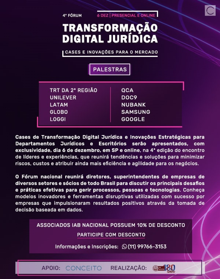4º Fórum - Transformação Digital Jurídica - Cases e Inovações para o Mercado