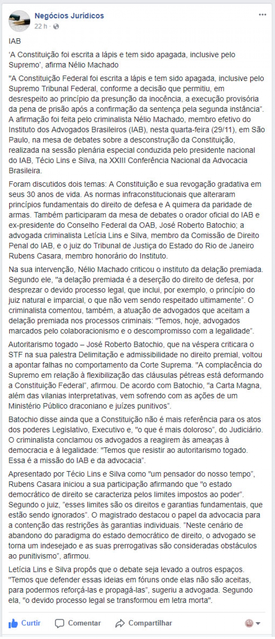 Negócios Jurídicos - 30/11/2017