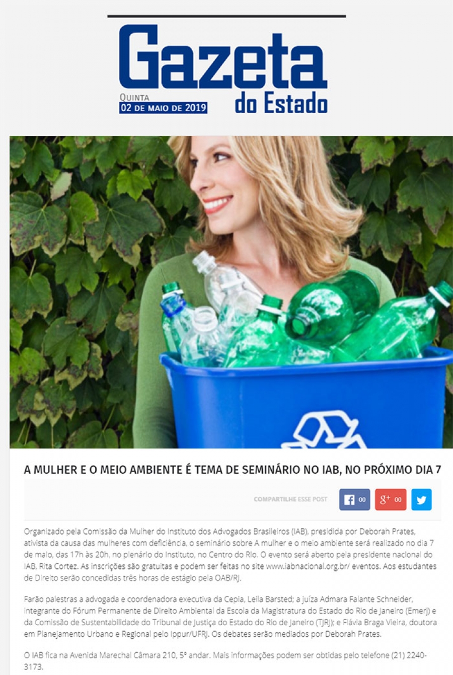 A mulher e o meio ambiente é tema de seminário no IAN, no próximo dia 7