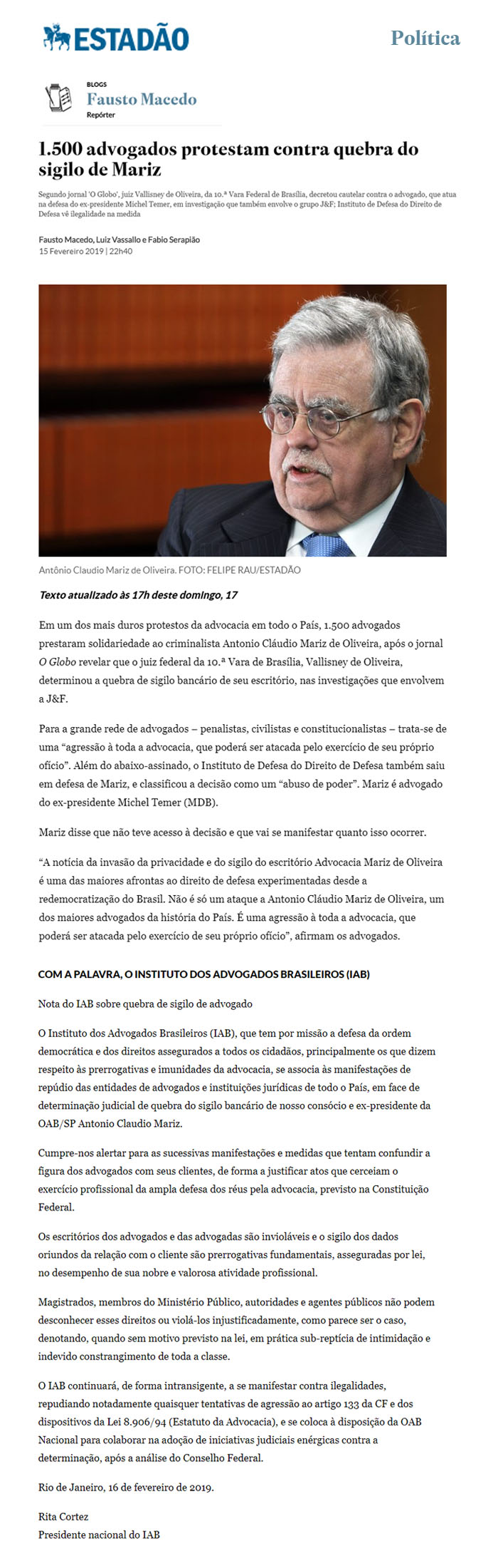 Leia a matéria completa em: https://politica.estadao.com.br/blogs/fausto-macedo/dezenas-de-advogados-protestam-contra-quebra-de-sigilo-do-escritorio-de-mariz/