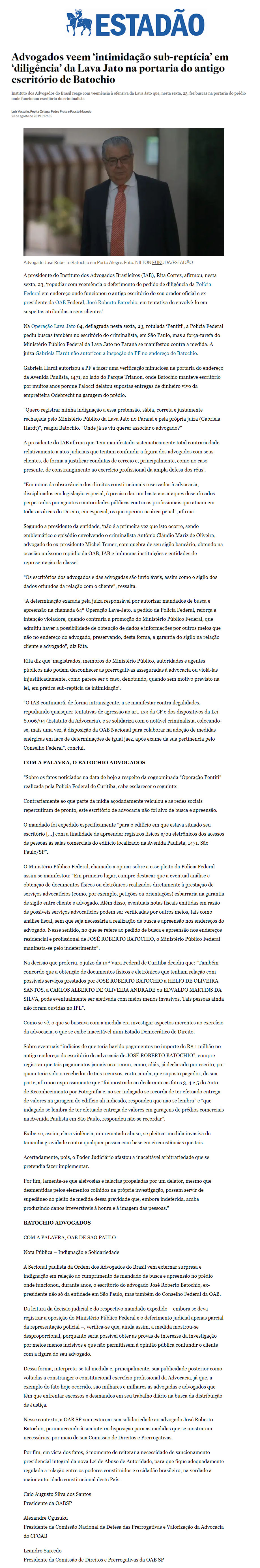 FONTE: O Estado de S. Paulo - 23/08/2019