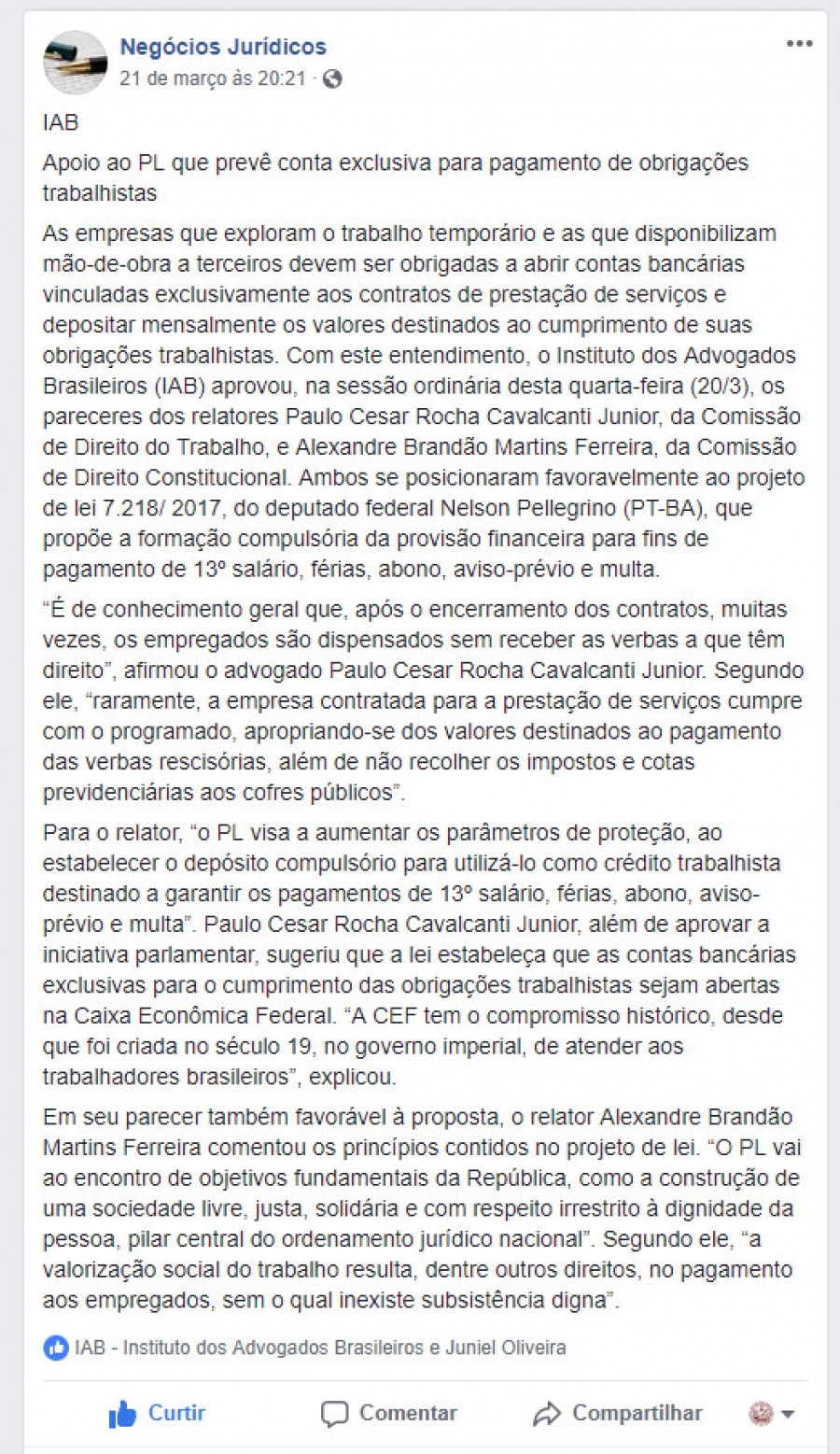FONTE: Negócios Jurídicos - 21/3/2019