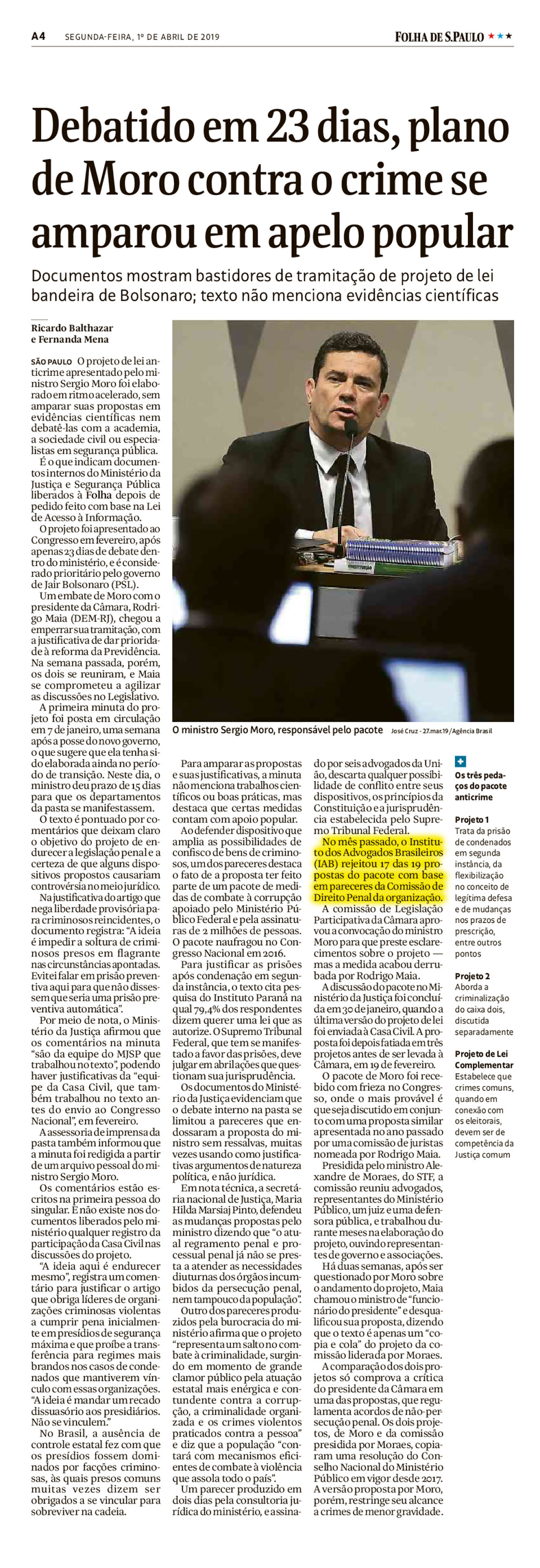 FONTE:  Folha de S. Paulo - 1/4/2019