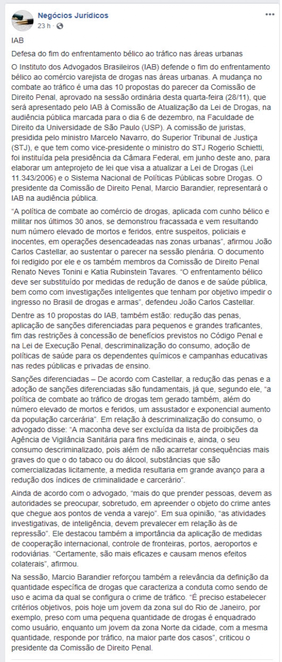 FONTE: Negócios Jurídicos - 30/11/2018