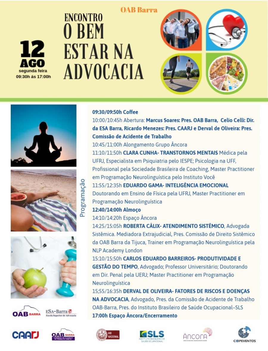 Dia 12 de agosto  de 2019, das 09h às 17h - LOCAL: OAB BARRA.