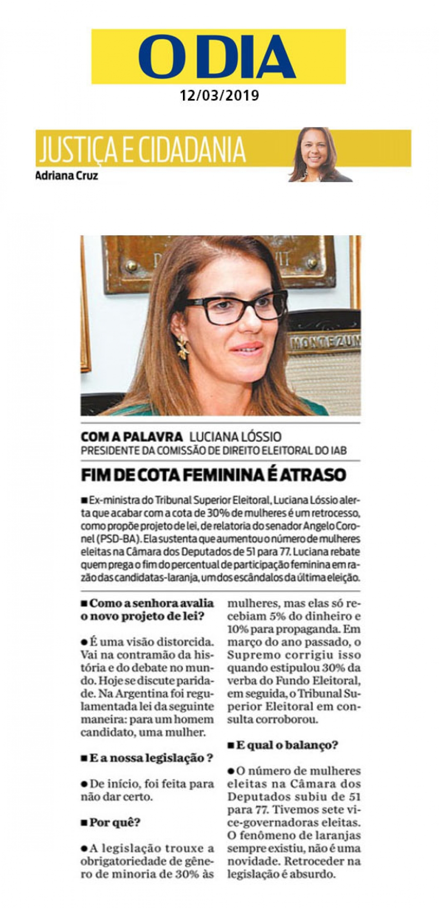 FONTE: Coluna Justiça e Cidadania - O Dia - 12/3/2019