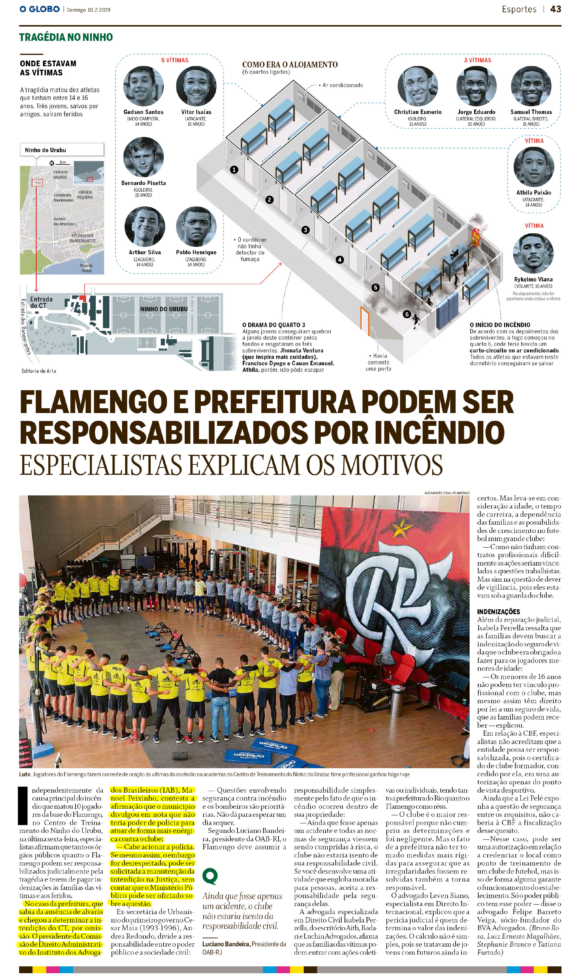 Segundo Luciano Bandeira, presidente da OAB-RJ, o Flamengo deve assumir a responsabilidade simplesmente pelo fato de que o incêndio ocorreu dentro de sua propriedade: