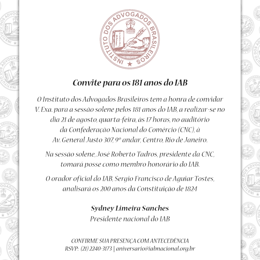 Dia 21 de agosto às 17h Local: Confederação Nacional do Comércio (CNC) Av. General Justo , 307 9º andar - CENTRO - RJ RSVP